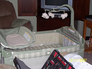 We recently bought this pack and play, which will act as our bassinet as well for the first little bit. When we went to Target last Saturday night to look for one, we saw this one on sale $20.00 off and wanted it but they were all out and they said they didn't have any in the back. Well, I went there on Monday with a friend and just for kicks walked by to see if, by chance, they had more of the pack and play and they did! Two more! So Jeff and I went to Target later that day and he asked the manager if we could have it for the price we originally wanted to buy it for and they said yes! So, we got this awesome pack and play for a great price! It has a changing table, bassinet insert with crib bumpers, a mobile, and plays music/sounds. I love it and my wonderful husband set it all up! So exciting! P.S. This is the only new thing we bought for the baby. Everything else has been secondhand, but still in great condition. Craig's list all the way!